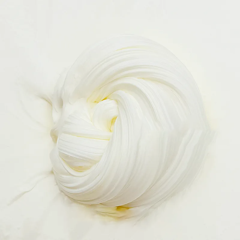 This slime features a soft, glutinous rice-like consistency with excellent elasticity. It stretches smoothly without tearing and folds beautifully, making it ideal for slow pulls and stress-relieving kneads.